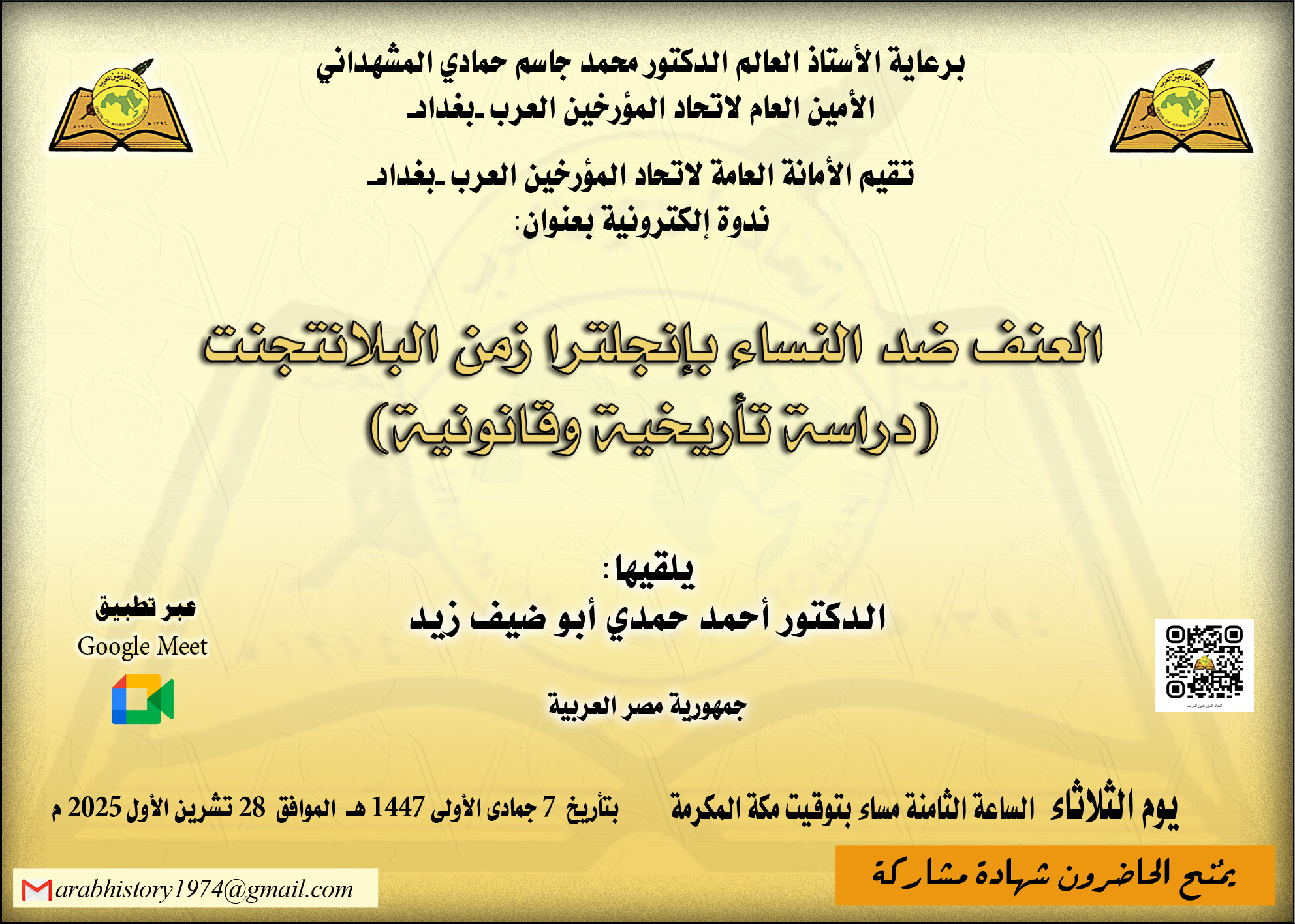 اتحاد المؤرخين العرب – الأمانة العامة – بغداد – ندوة إلكترونية: العنف ضد النساء بإنجلترا زمن البلانتجنت (دراسة تأريخية وقانونية)
